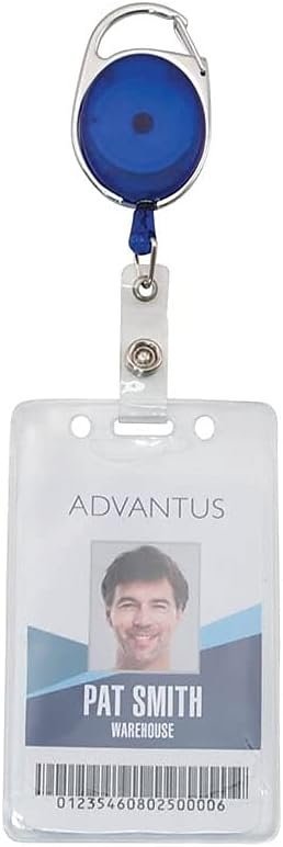 Are you tired of your badge dangling around your neck, making you feel like a prisoner? We’re here to provide a solution. The Advantus Carabiner-Style Retractable ID Card Extending Reel offers a more secure, hand-free, and comfortable solution for keeping your identification and access badges close at hand and securely connected. No strangling neck cords or pins to damage your clothing. The clear, vinyl strap mechanism can be inserted into most slotted ID cards, badge holders, or key rings and snapped closed.