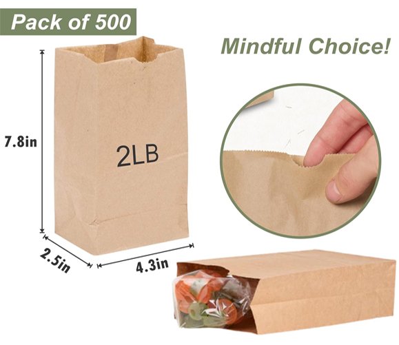 Brown Paper Bags 2 LB Capacity – 500/Case