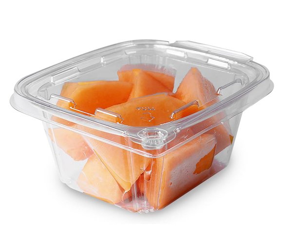 Made from clear PET plastic, this container provides excellent product visibility while offering durability and leak resistance. It is designed primarily for cold food applications and ensures contents remain fresh and well-presented.