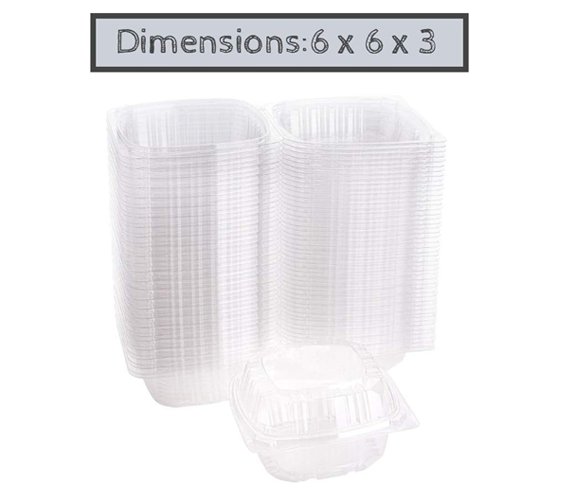 - Size: 6″ x 6″ x 3″ clear square hinged container, ideal for single-serve portions