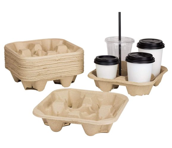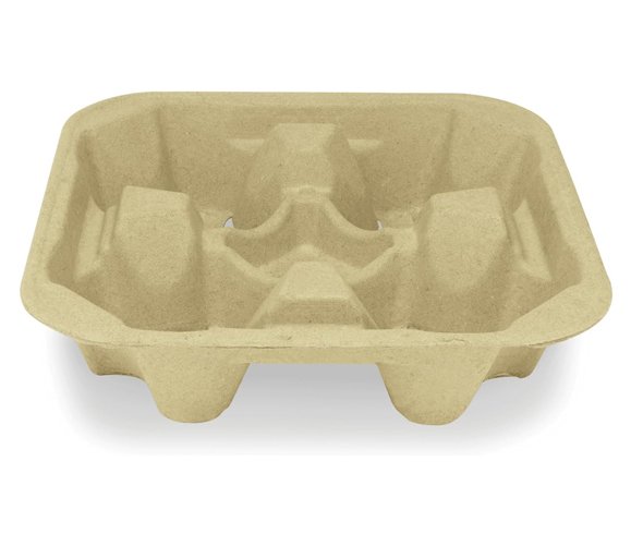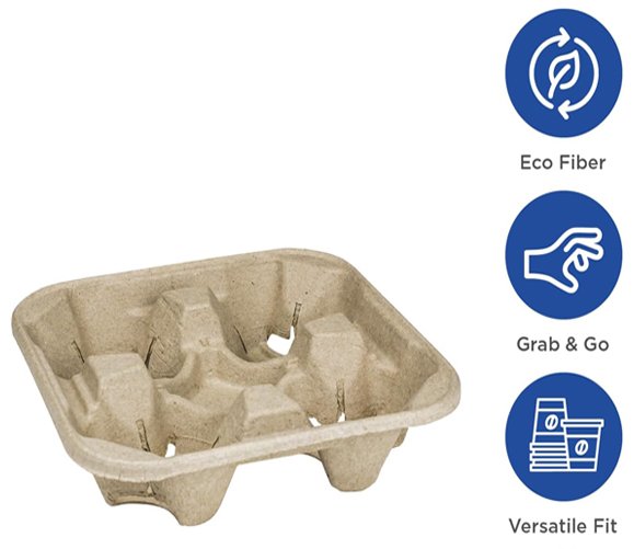 This 4-cup drink carrier tray is a simple and reliable way to carry multiple drinks at once. It is made from strong molded fiber that keeps cups steady and helps prevent spills while carrying. The tray can hold up to four cups and works with both hot and cold drinks in different sizes. Its eco-friendly material makes it a good choice for businesses that want to reduce waste. With 300 trays in one case, it is perfect for coffee shops, restaurants, food trucks, and delivery services that need an easy and efficient drink carrier solution.