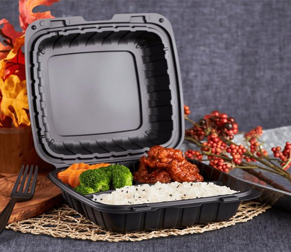 - Design: 3-section layout prevents mixing of entrées, sides, and sauces during transport