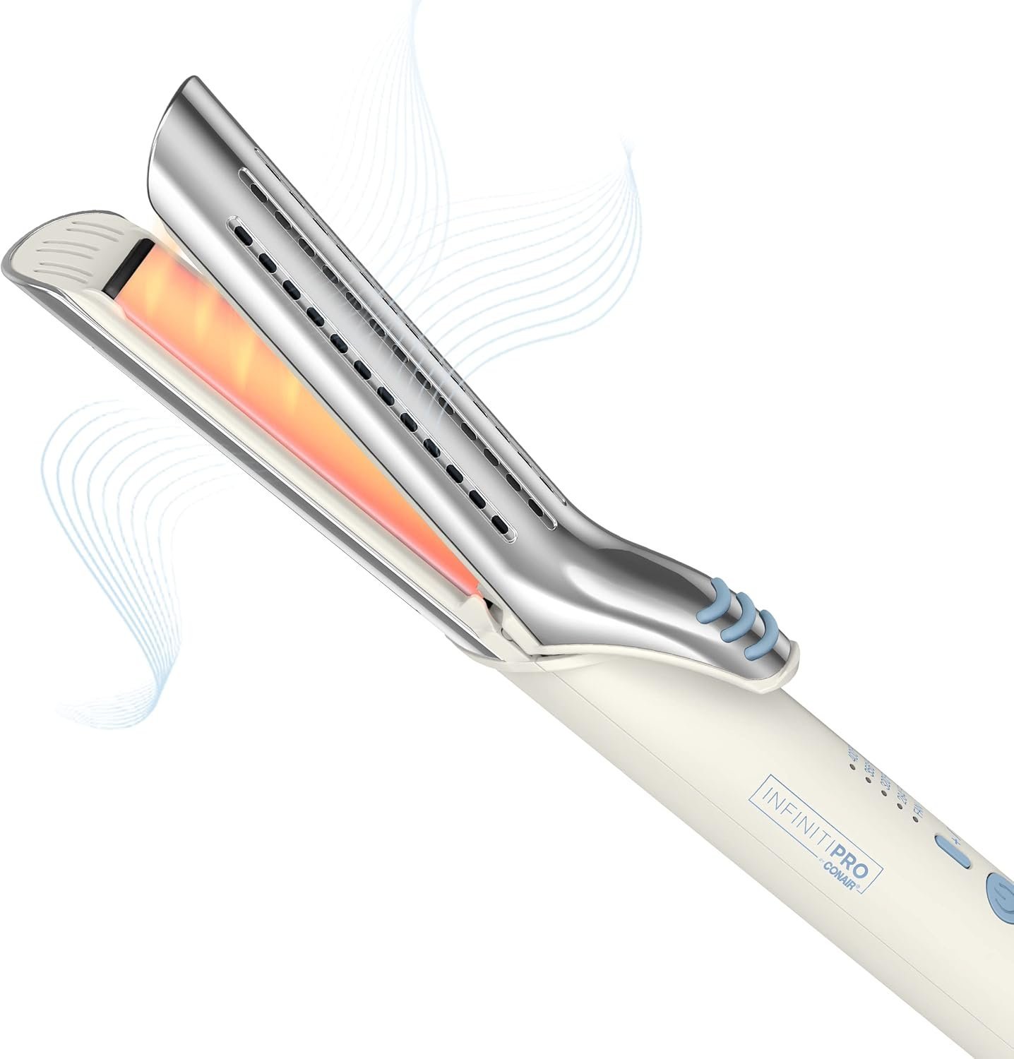 Designed for effortless styling, the Cool Air Styler Luxe from InfinitiPRO by Conair® features innovative cool air technology that’s simple to use for professional results at home. Cool air flows through the vented barrel as you straighten or curl, so your hair is protected against heat damage and set for results that keep you looking like you just stepped out of the salon. Variable temperature control makes it easy to customize heat for any hair type, whether fine, medium, curly, straight, or textured. Use up to 400°F for hard-to-style spots and switch the cool air on or off, depending on your needs or preference. The ceramic surface of the plates smoothes down flyaways while distributing even heat for a salon-perfect finish with exceptional shine and manageability. Effortlessly curl or straighten and protect your hair with this ultra-versatile tool from InfinitiPRO by Conair®.