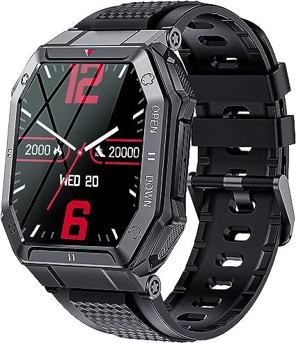 - 24 SPORTS MODES & WATER RESISTANT – Built-in 24 sports modes, EIGIIS fitness tracker for men could automatically detect and record your workout data while you are training. You could check your daily/weekly/monthly report on DaFit App. IP67 water resistant standard tactical smartwatch for men is no problem for washing hand and jogging in rain (BUT NOT support swimming, diving, taking a shower/sauna etc).