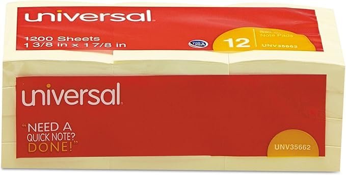 Universal Self-Stick Note Pads, 3 x 3, Yellow, 100-Sheet, 12/Pack